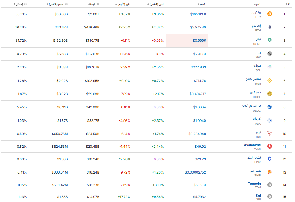 في البيتكوين فوق 106 ألف دولار تتبعت أسعار العملات الرقمية الأوسع نطاقاً في الغالب الأرباح التي حققتها البيتكوين، على الرغم من أن المكاسب الإجمالية كانت محدودة بسبب ترقب اجتماع مجلس الاحتياطي الفيدرالي هذا الأسبوع.
