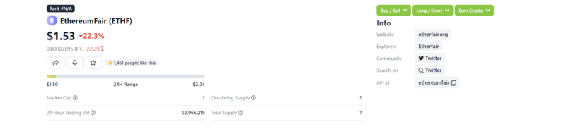 حيث كررت صفحة Twitter الرسمية للمشروع أن شريط ETHF هو المؤشر المناسب لعملة EthereumFair.