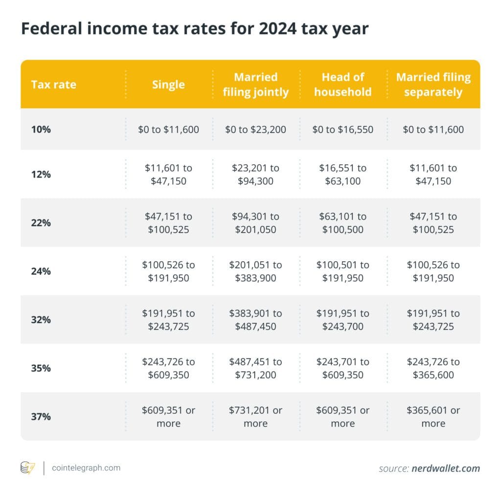 شرائح ضريبة الدخل الفيدرالية لأرباح العملات الرقمية للفترة 2024-2025